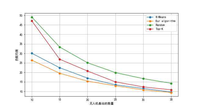 圖3 隨著無人機基站數量不斷增加,不同方法的性能對比。