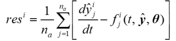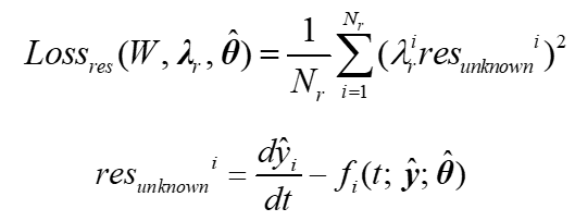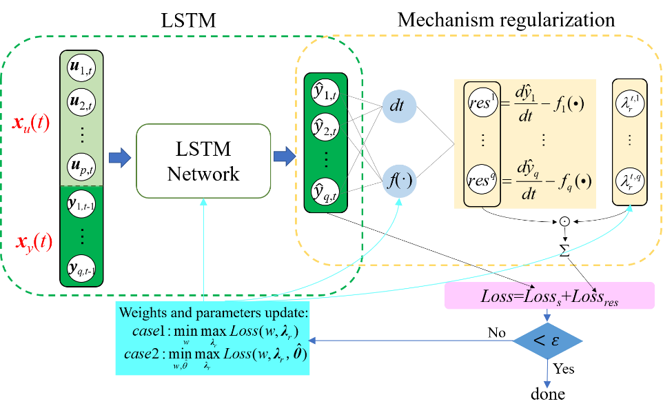 MRLSTM的機理正則化部分定義為下式。其中,na為解空間中隨機分布的配置點數量。顯然,resi表示第i個常微分方程與模型輸出在na個配置點下的殘差之和。