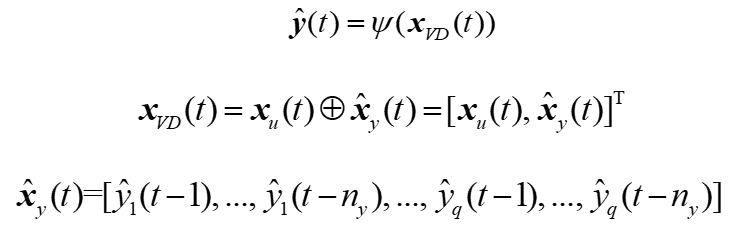 在神經網絡訓練過程中,模型的輸入由實際采樣數據組成。這種模型被大多數基于深度學習的非線性系統辨識方法所使用。然而,為了模擬被控對象對控制信號的響應,希望在訓練結束后構建一個只使用CV的實際初始條件和MV的實際值作為輸入的模型。該模型可以作為虛擬裝置模擬受控對象在不同工況下的動態響應或測試控制算法的性能,更適合控制領域。因此,模型的輸入向量由實際輸入和預測輸出組成,而不是實際輸入和實際輸出,如下式所示。