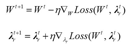自適應權重梯度更新方程如下:
