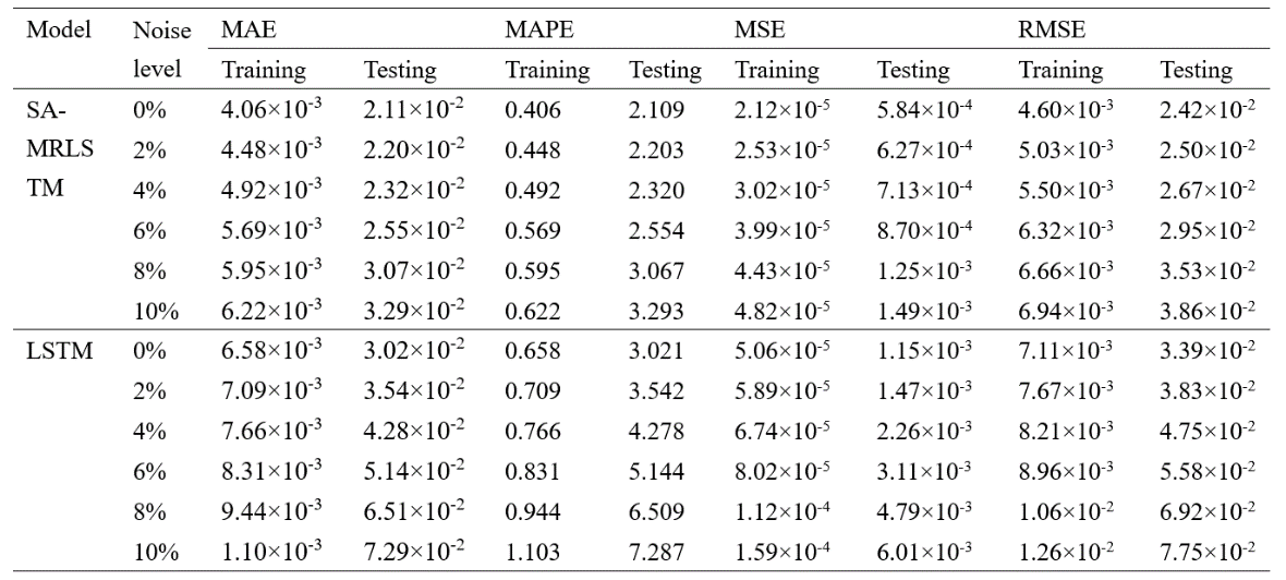 表2 不同測量噪聲下的模型訓練和測試結果