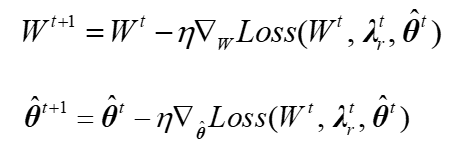 在未知的情況下,訓練機理正則化部分的問題變成了半監督學習任務。具體實現方法為通過最大化關于自適應權重的損失并最小化關于網絡權重和參數估計的損失來獲得一致性參數估計:
