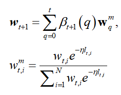 首先,我們選擇相對熵損失函數作為自適應權值動態更新工具,用于獲取遷移專家學習場景的后悔上界。 其次,參考在線觸發器算法的討論,推導了如何自適應地動態調整學習速率。我們也得到了學習率的上界。 最后將學習率的上界轉化為后悔函數的上界,討論了如何在后悔函數上得到一個更小的上界,實現超參數的自適應調整。