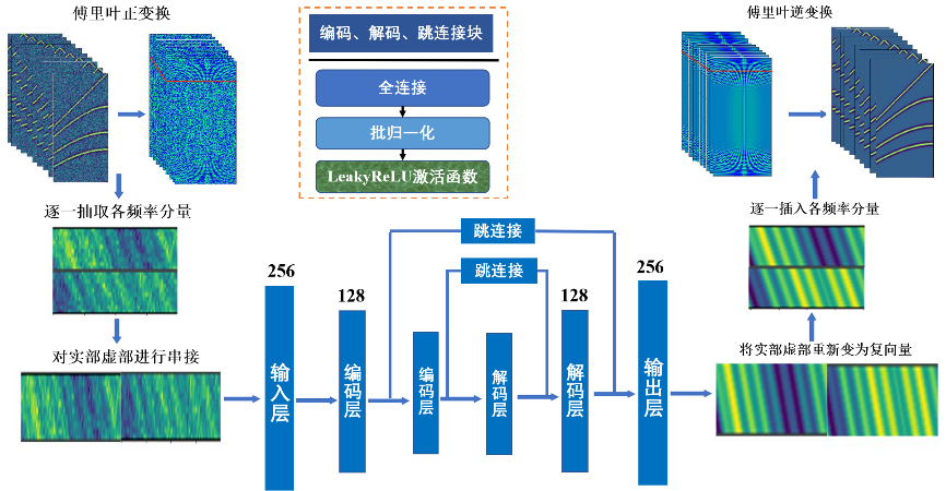 該過程即為式(6)的逆過程,利用編碼器的稀疏系數重構數據。在整個過程中由于壓縮作用,會將不相干的噪聲壓制,而只保留相干性較強的有效信號。