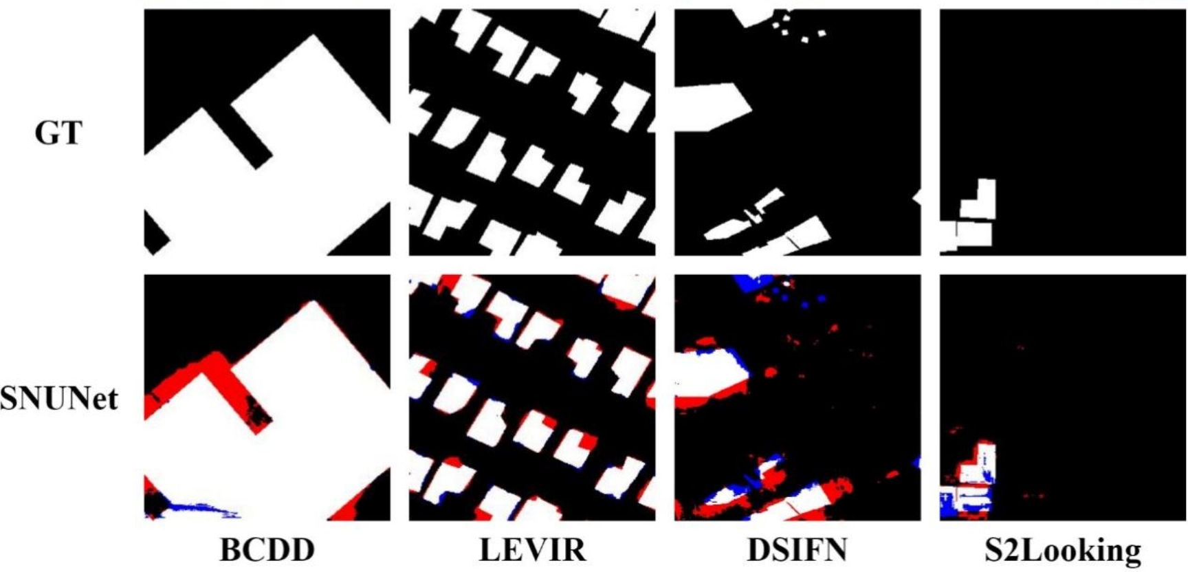 圖1 SNUNet在四個數(shù)據(jù)集上的視覺結(jié)果