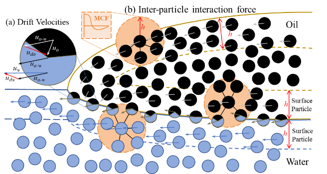 本文針對河流溢油擴散的兩相流模擬問題,提出了一種新的模擬方法。基于混合模型、表面張力模型和DFSPH方法構建了模擬模型MTDF-SPH。為了加速兩相流模擬,采用知識蒸餾方法設計了一種異構圖注意力網絡PAGATNet。通過多個實驗證明了本文方法在模擬河流溢油時具有更高的穩定性。