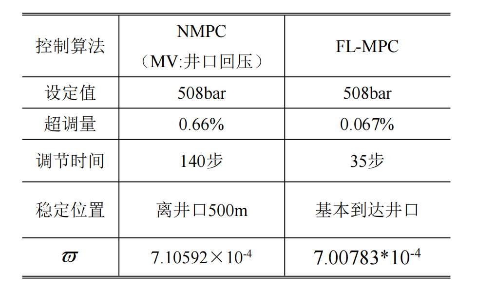 由表3和圖2可以看出,FL-MPC方法的比NMPC(MV:井口回壓)方法的
