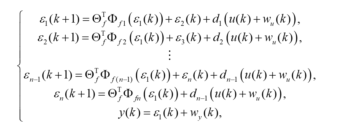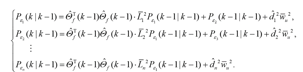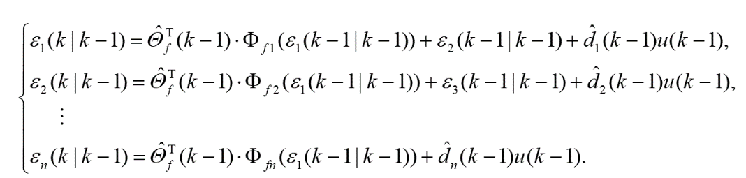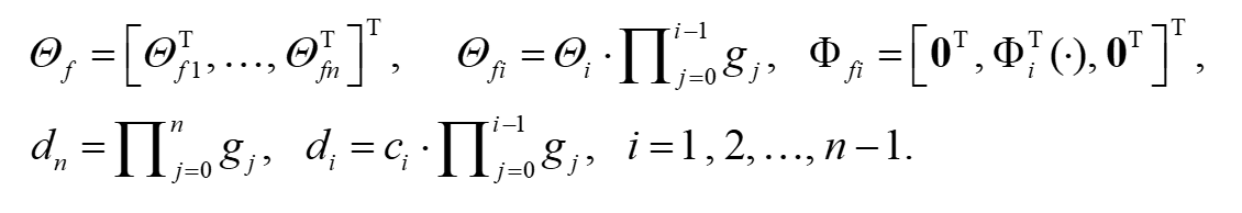 在無噪聲情況下,即,考慮自適應控制方案。在不存在輸入噪聲和輸出噪聲的情況下,將式(2)中的所有方程迭代代入合并,可以得到如下系統方程: