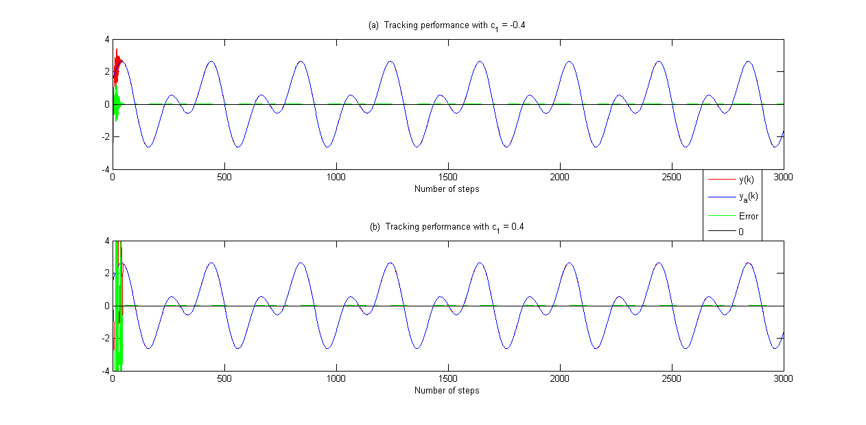 1.無論c1 > 0還是c1 < 0,基于非線性濾波器的自適應控制方法都能比一般自適應控制方案更準確地顯示跟蹤性能;