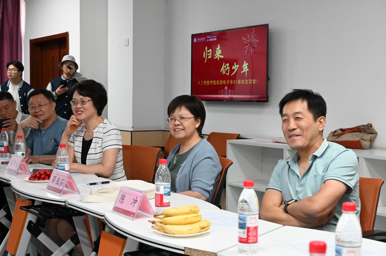 慶祝大會結束后,學院黨委書記董艷軍、副院長范媛攜各專業教師代表與校友親切合影。隨后,在主樓B座和四教分別召開各專業返校校友座談會,雙凱、梁華慶、錢步仁、姜珊、薛亞茹、陳沖、吉莉、羅雄麟、左信、聶建英、何仁初、許鋒等教師代表參與座談。座談會上,各系主任詳細介紹了學校、學院及各系事業發展情況,對校友們在各行各業取得的成績表示熱烈祝賀,并誠摯希望校友們持續關注母校發展。座談中,師生共同追憶在校時的難忘點滴,校友們踴躍分享人生歷程與奮斗感悟,深情抒發對母校培育和恩師教誨的感激之情,紛紛為母校的蓬勃發展送上祝福。