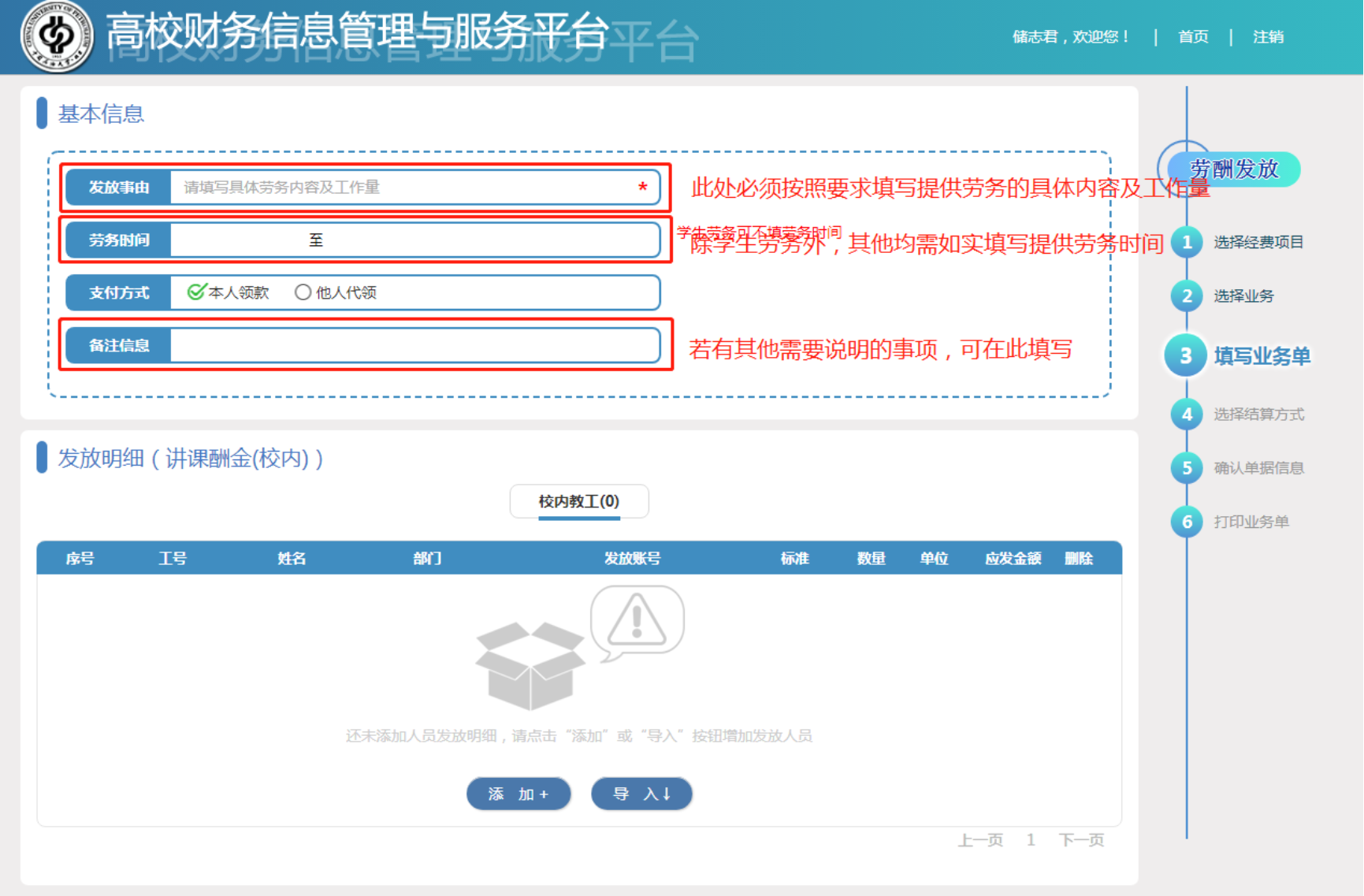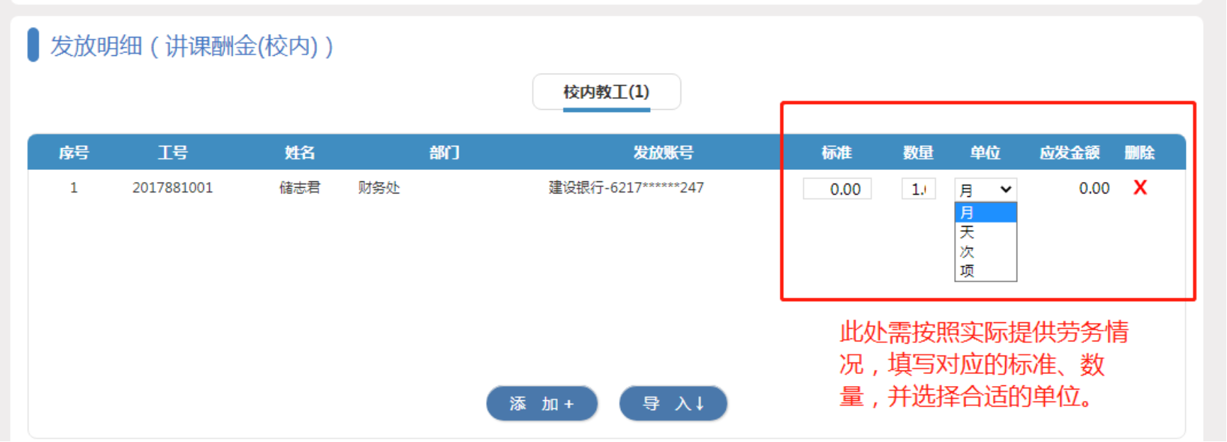 3、向校外人員發放其他勞務費時仍需提供勞務領取人的單位、職稱等信息。