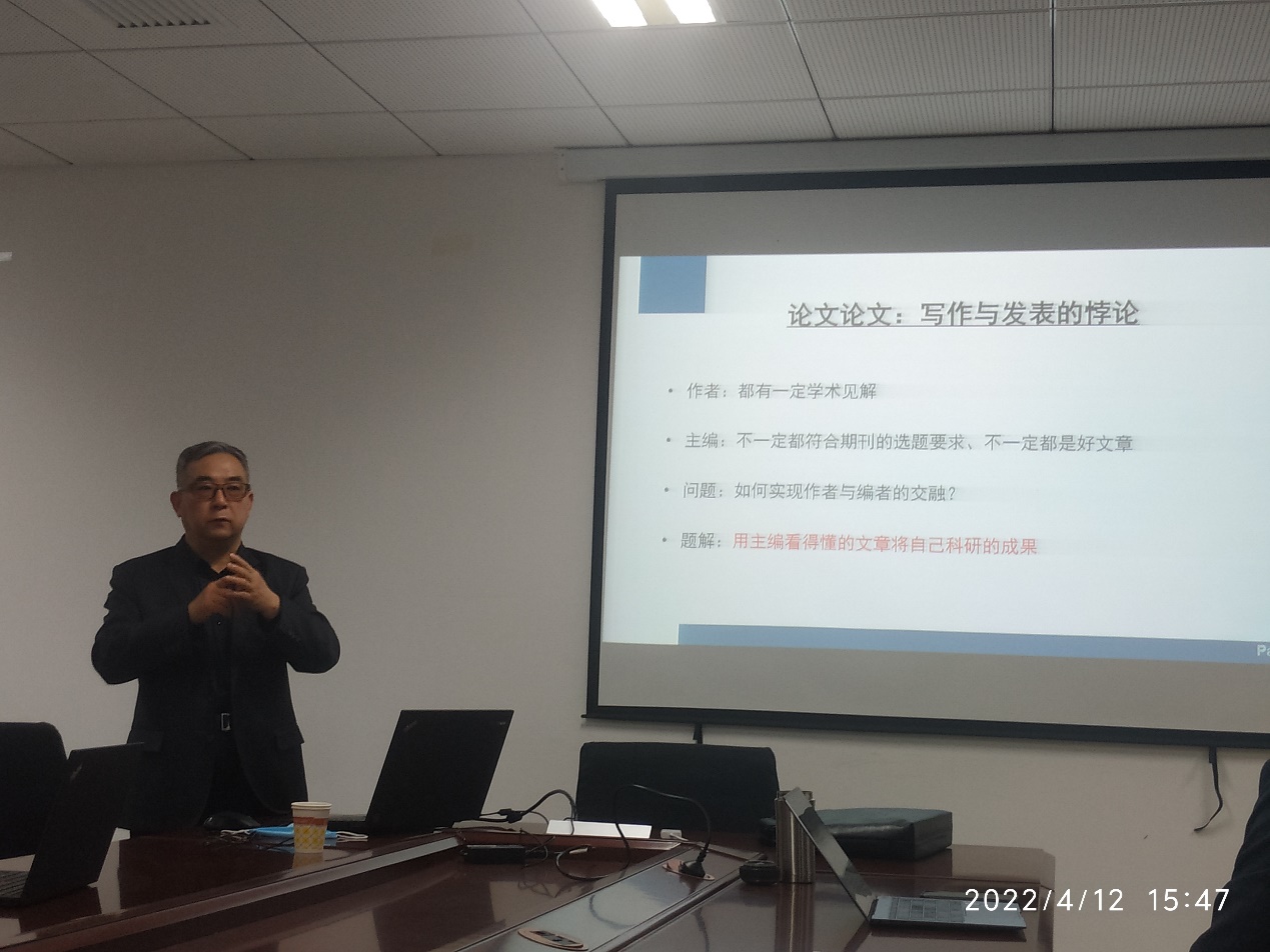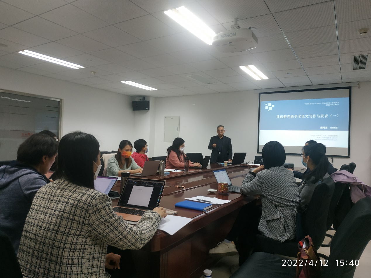 2022年4月12日,中國石油大學(北京)外國語學院在主樓A724舉辦“外院學術(shù)沙龍(第一期)”。外國語學院特聘教授田海龍作題為“外語研究的學術(shù)論文寫作與發(fā)表”的學術(shù)講座。趙秀鳳院長主持此次活動,20余位外院老師參加此次活動。