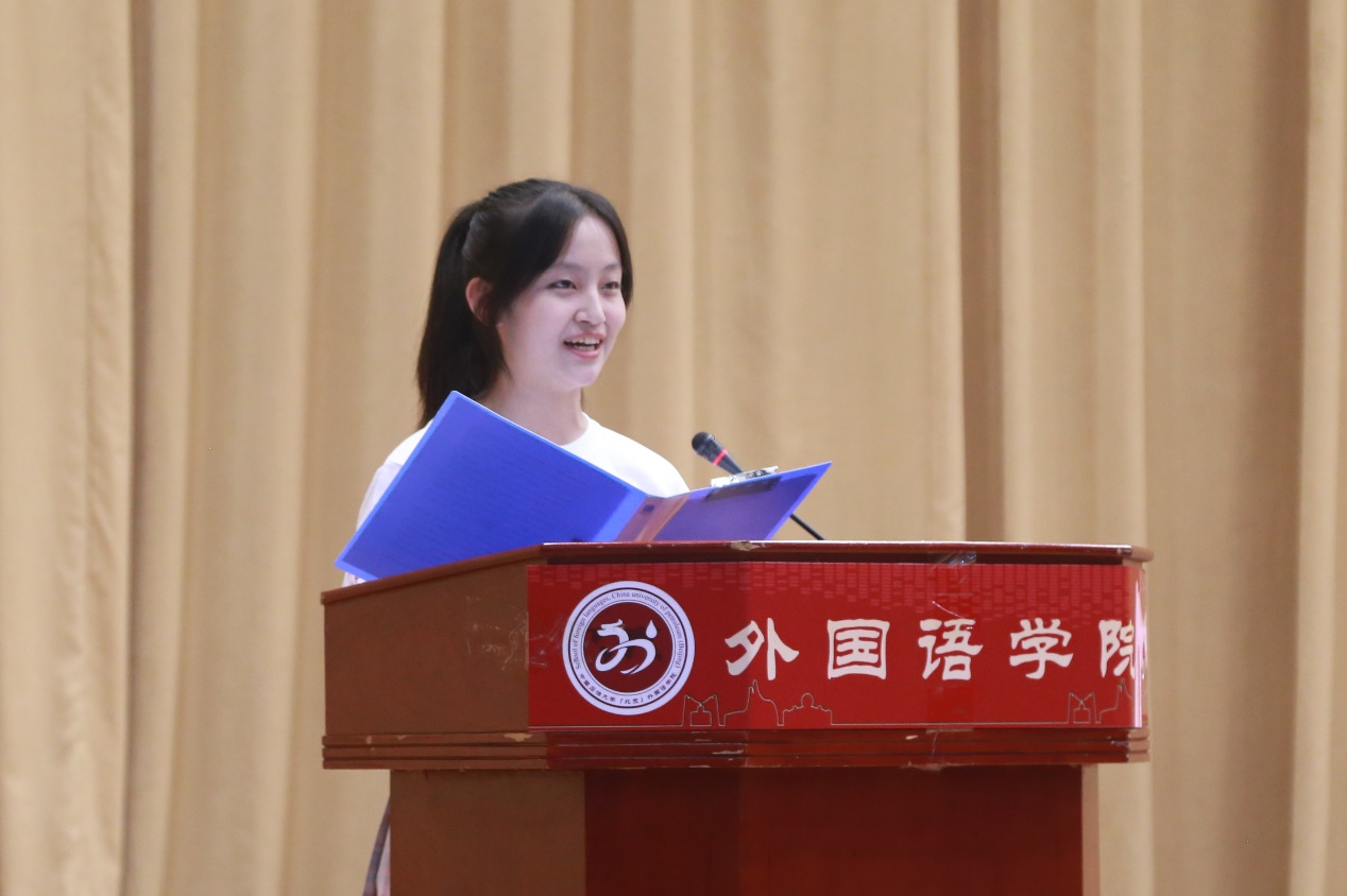 外國語學院唐萌萌老師作為教師代表發言。唐老師向同學們介紹了外國語學院充滿活力,擁有一流的教師隊伍,是學生成才的快車道。在這里,學生可以掌握各種實際技能,成為擁有國際視野的復合型人才。此外,唐老師希望同學們可以盡快適應大學生活,培養語言能力,全面發展,善于解決困難、抵制誘惑,做好學習規劃并合理利用時間。最后,唐老師表示全院老師都將作為學生們堅強的后盾,永遠與同學們攜手并進。