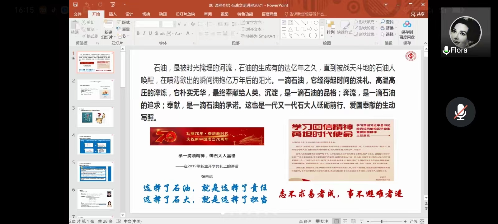 會議邀請到了五位老師從思政理念、思政內容、講授方式三個主要方面,分享思政教學活動案例。包括趙秀鳳老師的《能源文明進程》、胡大為老師的《會議口譯:石油貨幣》、鄭世高老師的《國際能源話語專題》、于紅老師的《能源時文讀譯》和吳素偉老師的《能源英語視聽》。