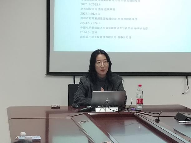 李家秀現(xiàn)任北京榮廣盛工程管理有限公司董事長(zhǎng)助理,曾在濰坊市招商集團(tuán)、中國電子節(jié)能技術(shù)協(xié)會(huì)任職。她從自身經(jīng)歷出發(fā),指出實(shí)習(xí)是大學(xué)生積累工作經(jīng)驗(yàn)和明晰個(gè)人職業(yè)發(fā)展方向的重要途徑,她鼓勵(lì)學(xué)生充分利用實(shí)習(xí)群、校園海報(bào)等學(xué)校提供的資源,及時(shí)獲取最新招聘信息,同時(shí)抓住校招機(jī)會(huì),積極投遞簡(jiǎn)歷、增加面試機(jī)會(huì)、積累實(shí)踐經(jīng)驗(yàn),以提高應(yīng)變能力和溝通技巧,同時(shí)清晰認(rèn)識(shí)自我,明確未來職業(yè)方向。李家秀在互動(dòng)環(huán)節(jié)中,針對(duì)學(xué)生提出的問題分享了自己在求職過程中遇到的問題,并提出了解決辦法。