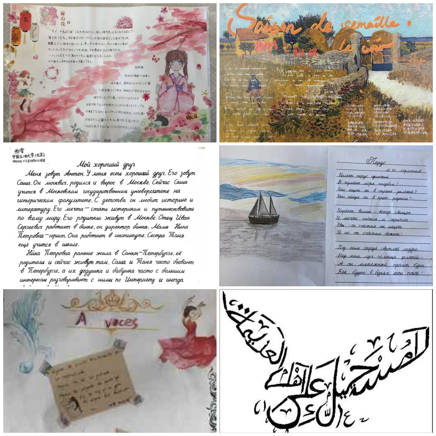 300多名學生參與了此次活動,用阿拉伯語、俄語、法語、日語、西班牙語等多語種書畫人生,獻禮不平凡的2020。