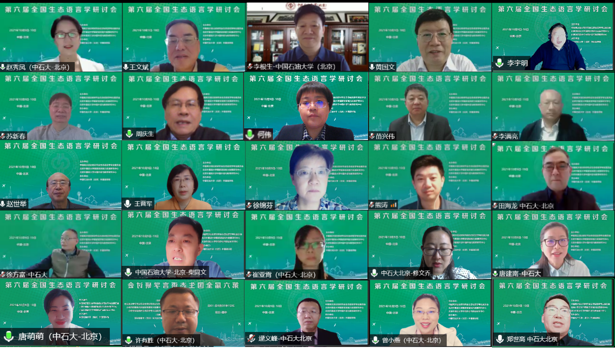2021年10月9日-10日,“第六屆生態語言學研討會”在中國石油大學(北京)成功召開。本次會議由中國英漢語比較研究會生態語言學專業委員會、北京外國語大學國家語言能力發展研究中心、中國外語與教育研究中心主辦,中國石油大學(北京)外國語學院承辦, Journal of World Languages (De Gruyter)、《中國外語》等期刊編輯部協辦。來自國內外160余所高等院校和科研機構的367位專家學者、碩博研究生參加了此次會議,在線直播點擊量超過2萬人次,具有良好的影響力和傳播力。