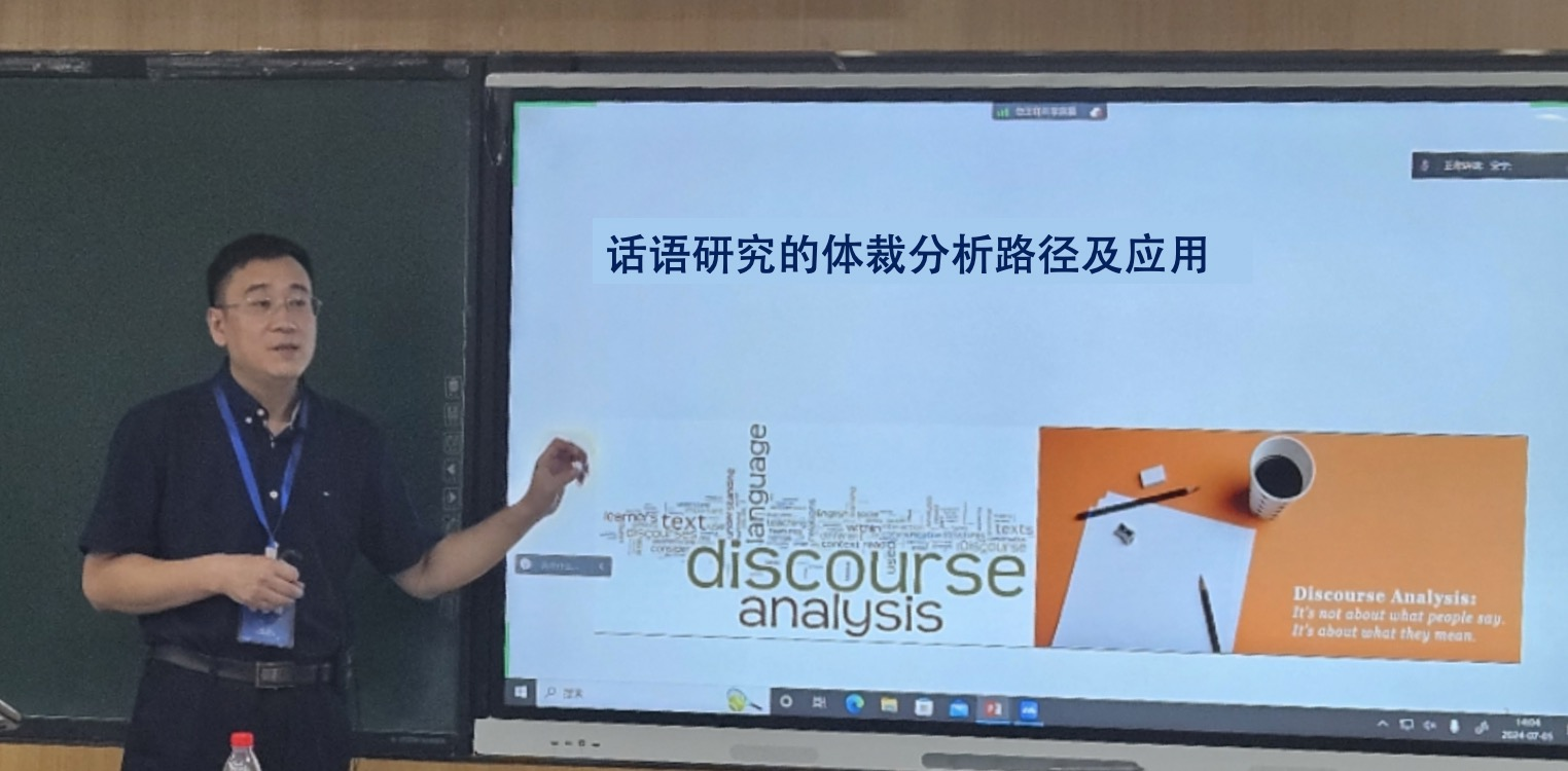 葛云鋒教授帶來題為"話語研究的體裁分析路徑及應用"的講座。葛教授梳理了話語研究的歷史和發展,結合實例闡述了體裁分析在不同場景下的應用,為與會師生提供了多維度的研究視角。