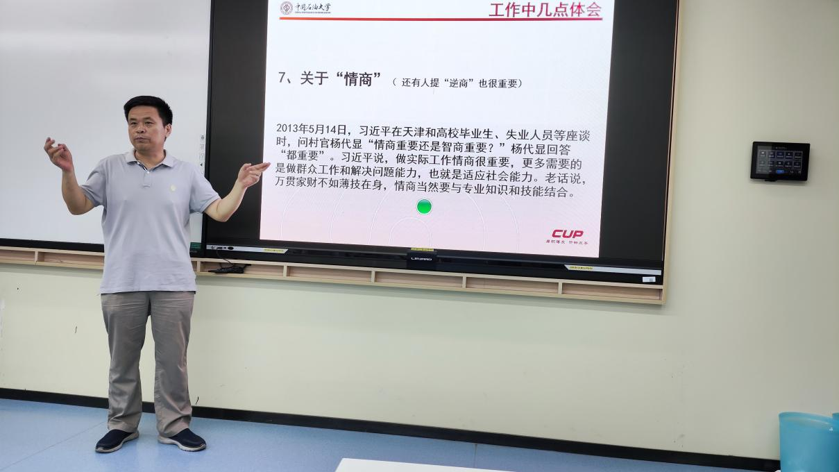 黨委書記周玉成為2021級學(xué)生帶來生動第一課,他從情理交融、知行并重、追求卓越等方面出發(fā),結(jié)合歷史典故、現(xiàn)實案例、個人經(jīng)歷,激勵學(xué)生將個人理想融入國家發(fā)展,將所學(xué)轉(zhuǎn)化為實踐,以家國情懷為根基,樹立遠(yuǎn)大志向,不懈追求夢想,為未來的成長之路奠定堅實基礎(chǔ)。
