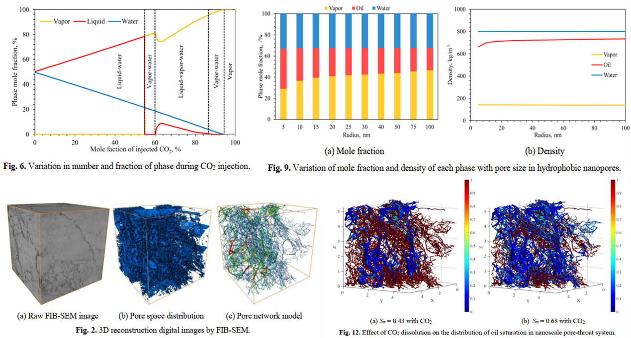 針對上述問題,我院宋兆杰教授團隊聯合卡爾加里大學、東方理工高等研究院、中國地質大學(北京)和中國地質大學(武漢)等單位,探究了納米限域效應作用下頁巖油注CO2的相態變化與流動機制,相關研究成果發表在國際能源領域著名期刊《Chemical Engineering Journal》和《Energy》。