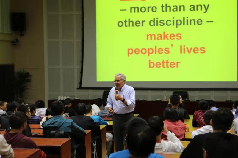 為積極響應學校“不忘初心、牢記使命”主題教育工作安排,緊扣立德樹人根本任務,促進師生深入交流,幫助學生全面成長成才,10月23日下午,美國國家工程院院士Dr David C.Wisler應邀為石大師生作題為“Engineering-What You Don't Necessarily Learn in School”的報告。報告會由地球物理學院院長饒瑩主持,地球物理學院黨委書記陸雅莉,副院長唐跟陽,部分教師以及學生代表一同到場參加。