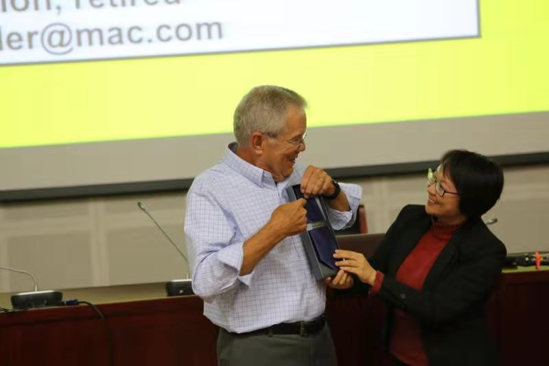 隨后地球物理學院黨委書記陸雅莉老師為Dr David院士贈送了紀念品,并對Dr David院士的到來表示感謝。報告結束后同學們帶著自己的疑問和想法與Dr David院士用英語進行分析與討論。