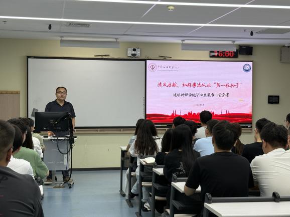 2025年6月12日,畢業生離校前夕,學院黨委書記王兵老師以“清風啟航:扣好廉潔從業‘第一??圩印睘橹黝},為全體畢業生黨員講授了在校期間最后一堂黨課。