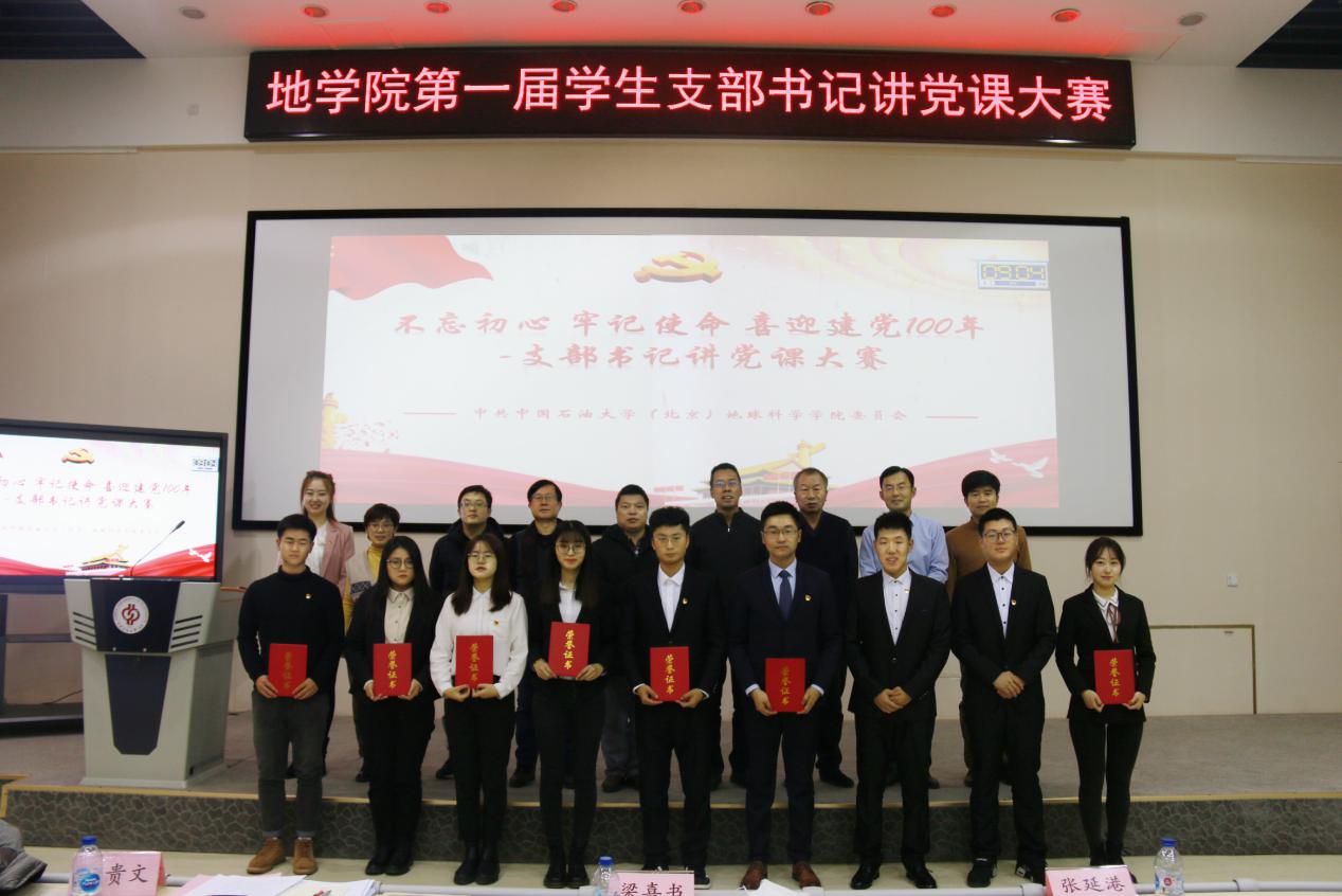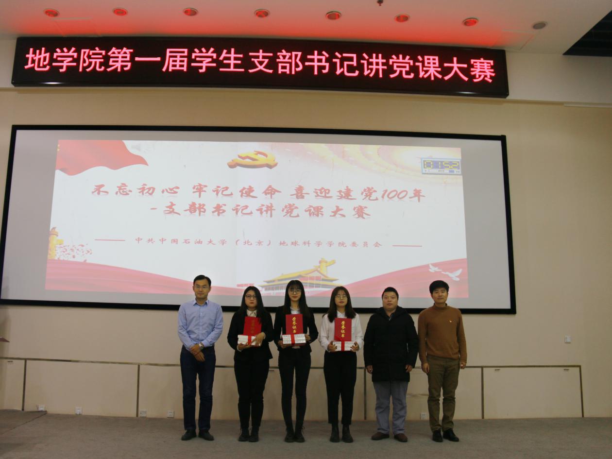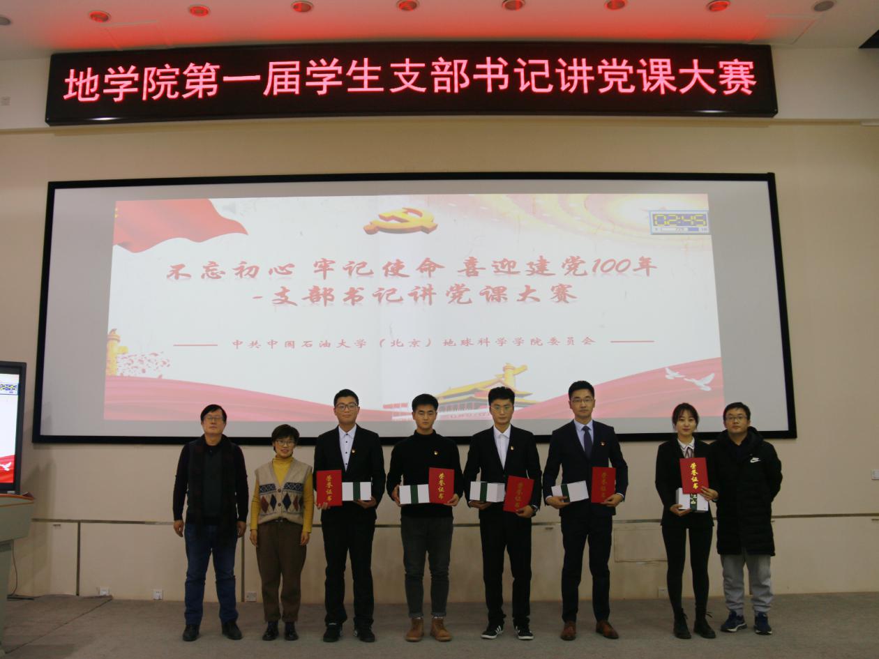 為深入學習黨的十九屆五中全會和習近平總書記給我校克拉瑪依校區畢業生重要回信精神,進一步提升師生黨員的黨建理論水平和業務素質,12月10日下午,地球科學學院黨委舉辦“不忘初心、牢記使命,喜迎建黨一百年”第一屆學生支部書記講黨課大賽。中國石油大學(北京)黨委組織部部長梁喜書、黨委宣傳部副部長張延港、學生工作處副處長戴兵、地球科學學院黨委書記王貴文、黨委副書記周學智及各教工支部書記或支委參加大賽并擔任評委,地學院90余名學生支部書記和委員現場觀摩了比賽。