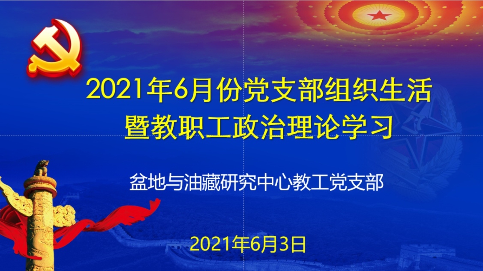 2021年6月3日下午,地球科學(xué)學(xué)院盆地與油藏研究中心教工黨支部在地質(zhì)樓721黨員活動室召開組織生活暨教職工政治理論學(xué)習(xí),支部23名黨員和4名群眾參加了學(xué)習(xí)。