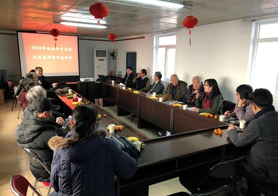 在2018年春節即將到來之際,地球科學學院工會于1月24日下午在石油大院離退休處組織召開了退休教師新年座談會。本次座談會共邀請到12位退休教師參加,院長曾濺輝教授、副院長陳冬霞教授、黨委副書記周學智和工會主席余一欣副教授,以及學校離退休處和院工會的相關老師參加了座談會。在座談會上,曾濺輝院長首先從學科建設、隊伍建設、科學研究、人才培養和黨政工學等方面對地球科學學院2017年的主要工作進展進行了詳細介紹,并對學院發展面臨的一些主要問題和2018年的工作思路進行了梳理,最后對各位退休老教師對學院發展的長期關注與支持表達了感謝,并祝愿大家身體健康!新年快樂!各位退休老教師對學院在教學和科研等方面取得的成果都感到非常欣慰和興奮,并飽含深情地回憶起在學校發生的點滴往事,同時還結合自身的教學和科研經歷,針對“雙一流”學科建設、專業發展、實驗室建設等方面開展了熱烈交流和討論。大家都認為學院的長遠發展一定要依靠團隊建設和青年教師,希望青年教師能靜下心來,甘坐冷板凳,力爭取得更多的一流創新成果。