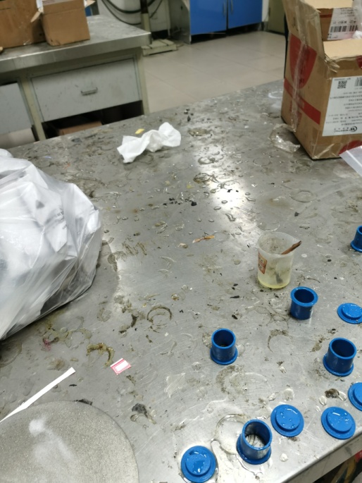 學生試驗后,沒有及時將貴重物品收拾進保險柜,分三處擺放在桌面上;液氮氣罐沒有明顯標識。 |