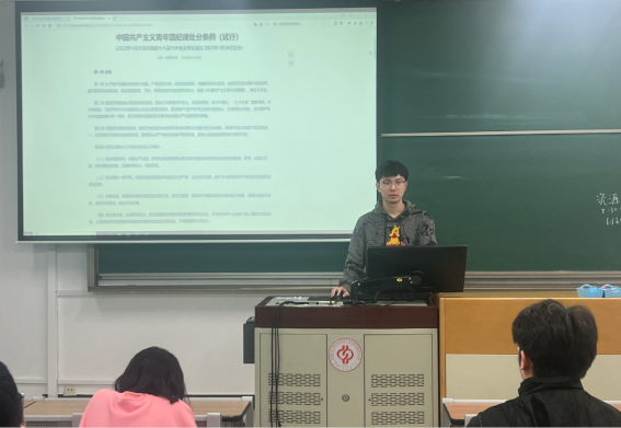 資源23-3團支部特此舉辦了一場以“高舉團旗跟黨走 嚴明紀律勇擔當”為主題的學習活動。本次活動旨在通過深入學習《中國共產主義青年團紀律處分條例(試行)》,引導支部成員明確紀律要求,樹立正確的價值觀,切實維護團組織純潔性、先進性和凝聚力。