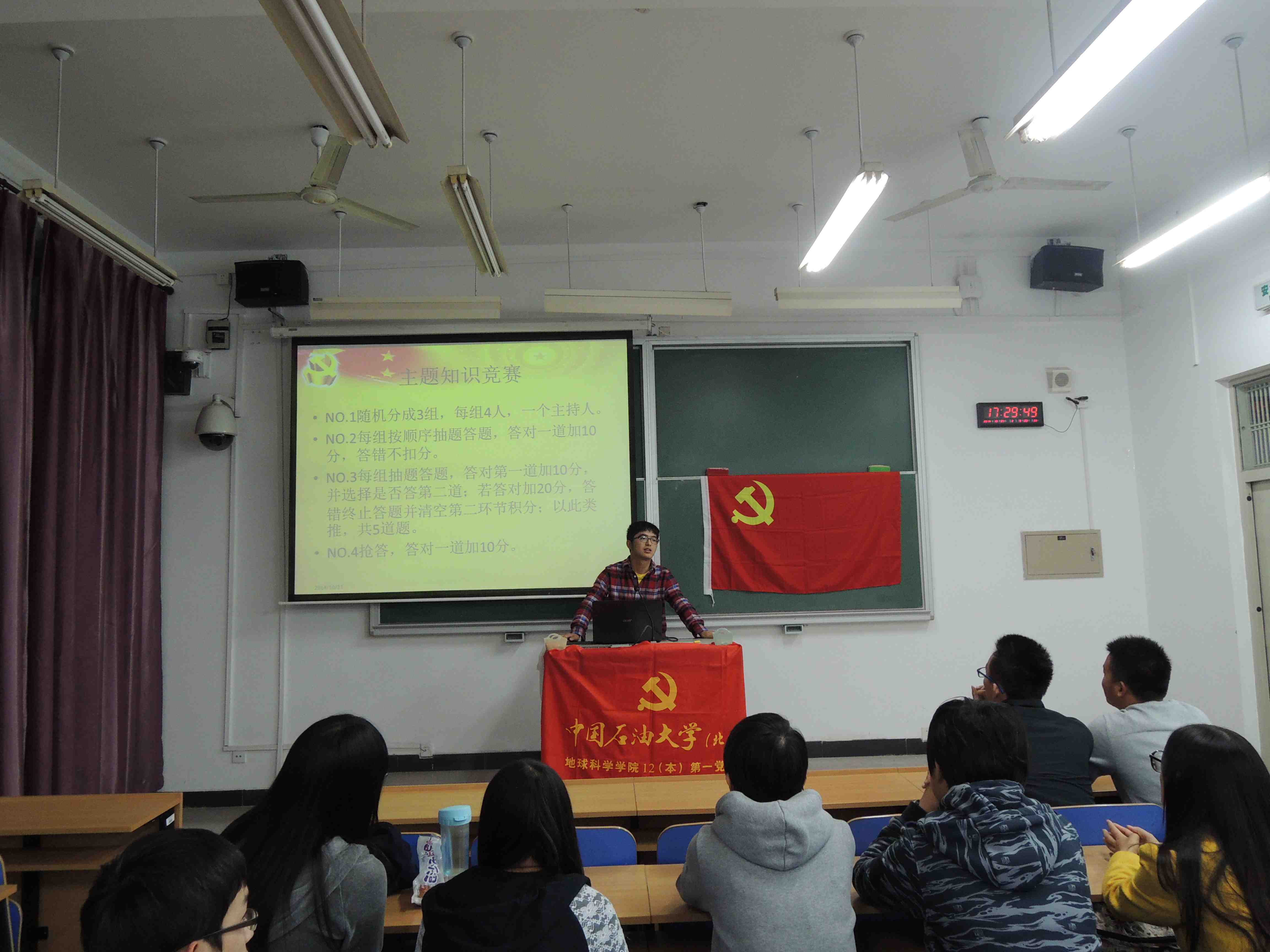 10月21日晚,地球科學學院12(本)第一黨支部在三教100教室召開組織生活會,學習《中國共產黨發展黨員工作細則》并開展知識競答。