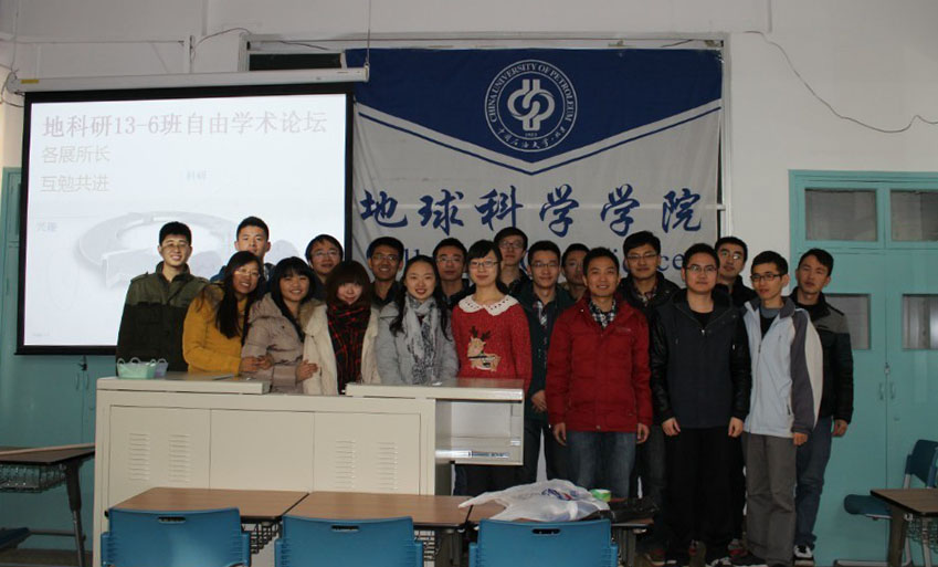 12月15日上午,地科研13-6班于一教102舉辦了以“各展所長,互勉共進”為主題的自由學術論壇。班級全體同學積極地參與了此次活動。