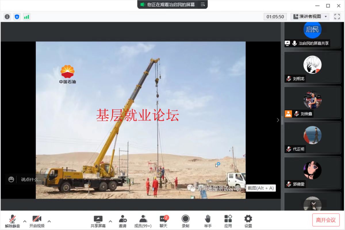 在本次論壇中,冶啟民從自身的基層工作經歷入手,向同學們介紹了青海油田,就油田所看重的能力與同學進行了分享和探討。