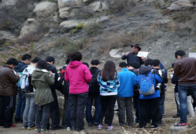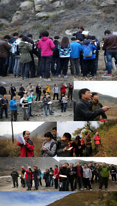 2014年10月11-12日,《沉積巖石學》教學團隊負責人、國家級教學名師朱筱敏教授發起、地球科學學院謝慶賓副院長組織教學團隊師生共赴河北省灤平縣,考察了灤平盆地白堊系沖積扇-扇三角洲沉積露頭剖面,實地開展了野外沉積地質教學活動。