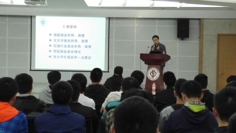 會議開始由岳長濤老師解讀當前國家、北京市和我校學生的就業形勢,針對三大石油公司往年用人需求預測今年石油行業招聘新趨勢,全面動員同學積極參加就業,同時也在同學們就業方向選擇上和職業生涯規劃上給出了指導性意見。隨后陳冬霞老師向畢業生分析了地學院詳細的就業形勢和考研政策,進行就業動員,同學們熱情參與其中。