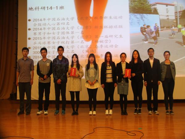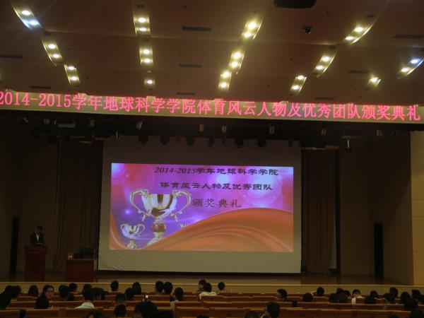 經學生申請,學院評審委員會審核:葉爾加那提• 包拉提獲突出貢獻獎;李大鵬、劉巖、李俊巍獲最佳男運動員稱號;韓旭楠、楊柳獲最佳女運動員稱號;劉瑋、尹力獲最佳新人獎;地球科學學院排球隊、地質12-3班綁腿跑隊獲最佳團隊獎;地質12-3班、地科研14-1班獲特別貢獻團體獎;衛蒙蒙、孫亮獲特別貢獻獎李新晨、戎佳、崔智淵、賈曉蘭、董智杰、占維佳獲先進工作者稱號。地學院黨委副書記陳冬霞老師為獲獎的個人及團體頒發了證書并發言。發言中陳老師闡述了體育風云人物頒獎儀式的意義并鼓勵廣大地學院學子發揚優良傳統,力爭使地學院的體育水平更上一層樓。