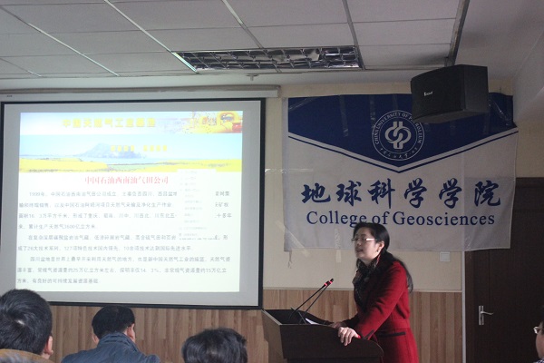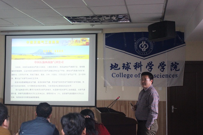 2015年11月19日,應(yīng)地球科學(xué)學(xué)院黨委副書記陳冬霞老師邀請,中國石油西南油氣田勘探院勘探所黨支部書記、副所長唐大海來校為我院師生作題為《四川盆地油氣勘探主要地質(zhì)認(rèn)識與實踐》的學(xué)術(shù)報告,報告由陳冬霞老師主持。