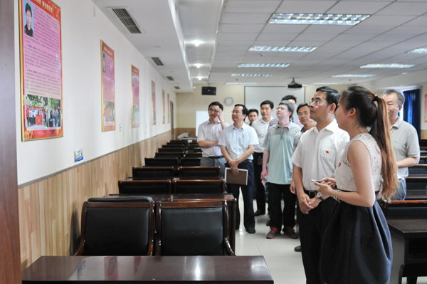 調研中,蔣慶哲參觀了地球科學學院黨建室。他指出,地球科學學院黨建室形式新穎,內容豐富,覆蓋了學院黨建工作方方面面,是很好的黨建工作陣地。蔣慶哲在黨員活動室內的黨員宣誓墻上親筆簽名,與廣大師生黨員一起許下錚錚誓言。