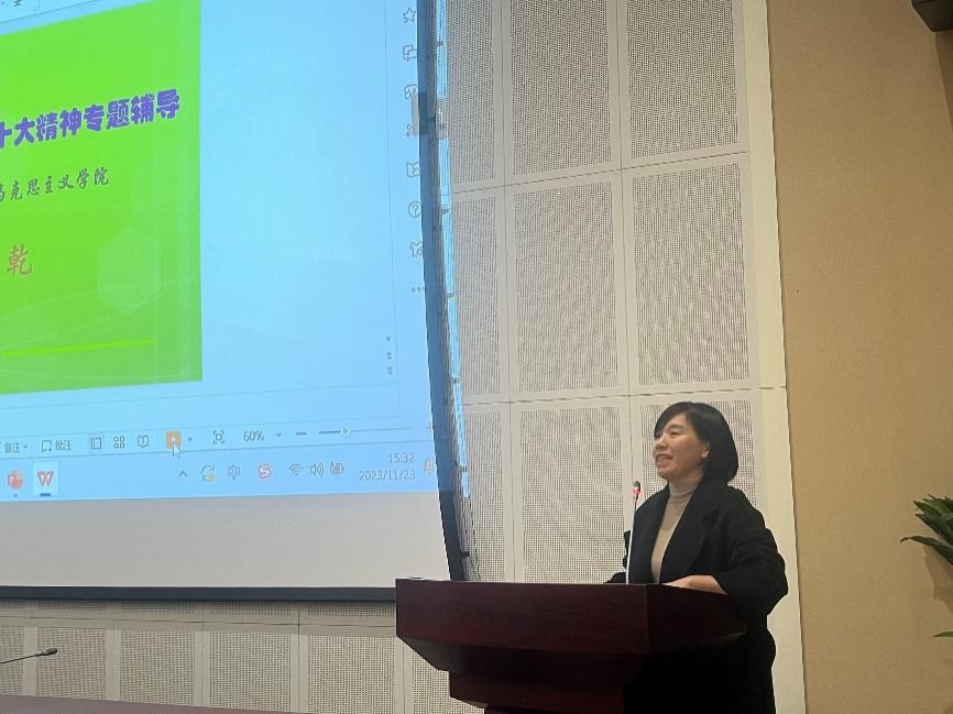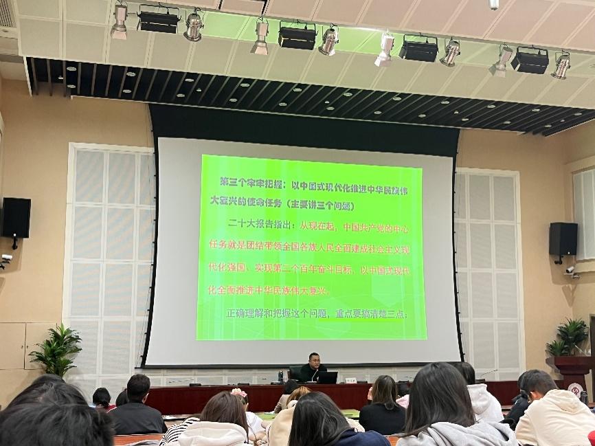 韓文乾教授從解讀黨的二十大主題、全面系統掌握習近平新時代中國特色社會主義思想的重要意義、如何學好習近平新時代中國特色社會主義思想三個方面進行講授。