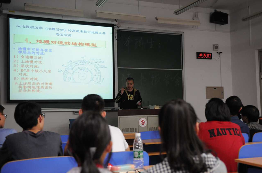 4月15日(周六)晚,在孫晶老師的組織下,地球科學(xué)學(xué)院16級資源勘查工程4班、創(chuàng)新班在第三教學(xué)樓100教室召開了巖石學(xué)讀書報(bào)告會活動(dòng)。46名學(xué)生分為8八個(gè)小組,分別對“地幔中巖石種類”、“花崗巖分類與構(gòu)造環(huán)境”、“玄武巖柱狀節(jié)理成因”、“玄武巖的分類和構(gòu)造環(huán)境”、“安山巖的構(gòu)造環(huán)境與成因”、“蛇綠巖的組合與分類”、“火山巖TAS圖解”和“QAPF圖解”等問題進(jìn)行了研究。經(jīng)過一個(gè)月的文獻(xiàn)閱讀和小組討論,每個(gè)小組的代表對所研究的課題進(jìn)行了15分鐘的匯報(bào)。