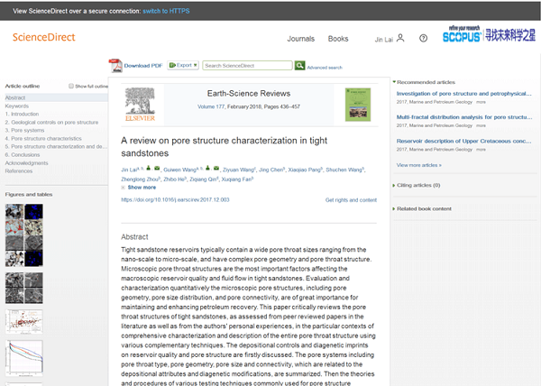 近日,地學院王貴文教授所帶領的測井地質學研究團隊在致密砂巖儲層孔隙結構表征研究方面取得重要進展,相關研究成果《A review on pore structure characterization in tight sandstones》發表在國際地學頂級期刊《Earth-Science Reviews》上。論文通訊作者為王貴文教授,第一作者為賴錦講師,其余作者均為王貴文教授團隊研究生,中國石油大學(北京)地球科學學院與油氣資源與探測國家重點實驗室為第一完成單位。《Earth-Science Reviews》(ISSN:0012-8252)創刊于1966年,主要出版地球科學和行星科學領域新進展的綜合論述、書評以及國際學術動態報道。另據Clarivate Analytics公布的期刊引證報告(JCR)顯示,該期刊2017年影響因子為7.051,近5年平均影響因子為9.078,屬于地學SCI一區TOP刊物,在地學領域擁有廣泛的學術影響力。