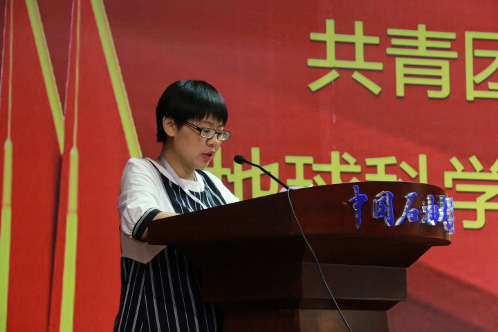 團委書記費葳葳代表共青團中國石油大學(北京)地球科學學院委員會向大會作了題為《立足特色 改革創新 牢記使命 砥礪前行》的工作報告。