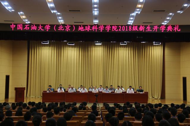2018年8月27日上午,地球科學學院2018級新生開學典禮在中油大廈報告廳舉行,歡迎地學院五百余名新同學的到來。中國石油大學(北京)副校長鮑志東、地學院院長曾濺輝、全國教學名師朱筱敏、長江學者獎勵計劃特聘教授曾聯波、北京市昌平區人大常委會副主任張強斌、地學院副院長岳大力、我校人事處副處長姜福杰、地學院黨委副書記周學智及各系、中心代表出席本次開學典禮。典禮由學院黨委書記王貴文主持。