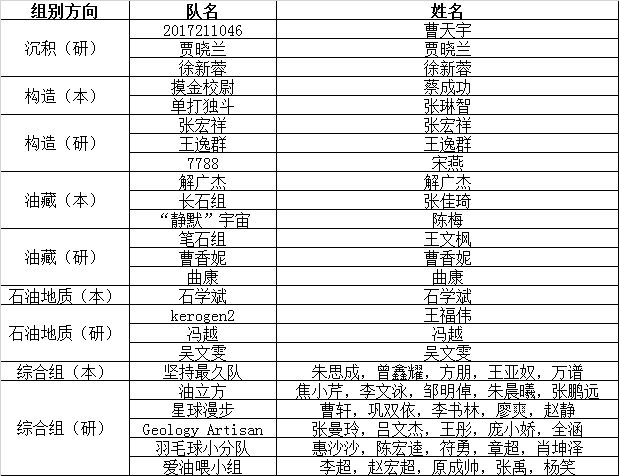最終,以下選手從選拔賽中脫穎而出,獲得代表學校參加第三屆全國油氣地質大賽總決賽的機會: