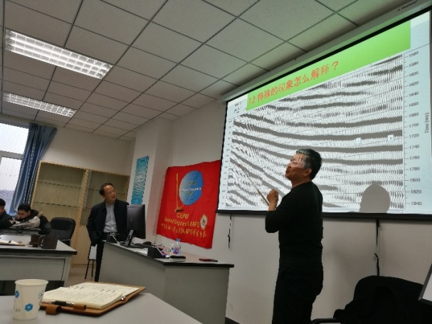 結合數十年來的地球物理資料處理方法研究和應用實踐,曹教授從地震資料的主要內容、無序中尋找有序、質量監控、如何尋找地層的厚度信息、剖面中隱藏的信息及高信噪比、高分辨率處理等方面與師生進行了分享,并以研究工作中遇到的實例與參會教師進行熱烈討論和交流。大家一致認為地震資料的處理與地震地質解釋相結合,才能更好的將地震資料運用到油氣田勘探開發中去。
