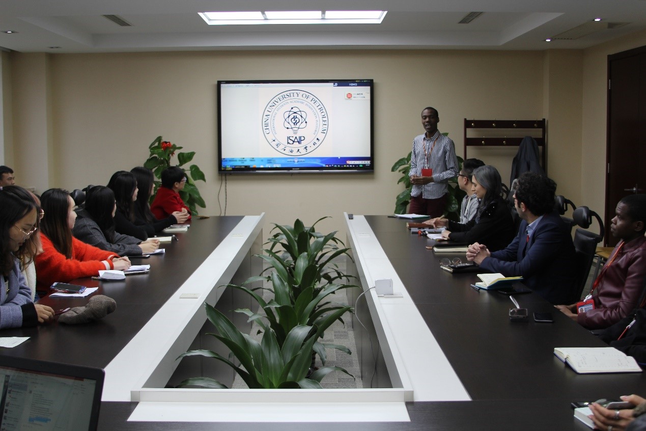 為促進中外學生交流合作,擴展學術(shù)視野、提升科研能力,2019年3月15日下午,石大AAPG學生分會與留學生學術(shù)創(chuàng)新團隊(ISAIP)在國際交流中心會議室召開分享交流會。石大國際學院副院長劉曉青、ISAIP指導老師施良雨、AAPG學生分會指導老師費葳葳參加了交流會。