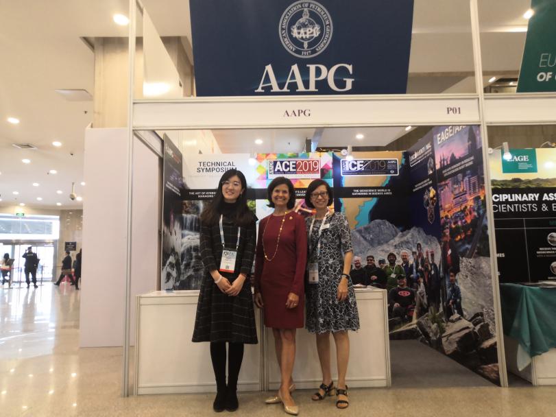 3月27日至28日,我院8名學生志愿者參與會議,負責AAPG展臺的講解工作。會議期間,學院AAPG學生分會成員前往北京國際會議中心,與AAPG總部及其他學生社團進行了深入交流。分會主席陳怡婷向AAPG總部主席Denise Cox女士、執行理事David Curtiss先生、亞太區負責人Adrienne Pereira女士展示了分會的宣傳手冊,并介紹了分會舉辦的各項系列活動,得到了他們的一致好評。同時,分會與我校地球物理學院SEG學生分會、中國地質大學(武漢)AAPG學生分會、西南石油大學SPE學生分會等各兄弟院校學術社團成員就社團活動、競賽賽事、社團發展等多個方面進行溝通交流,為今后的進一步合作奠定了基礎。