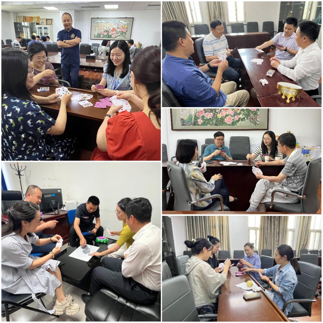 生日會結束以后,學院工會還繼續組織了首屆教職工摜蛋比賽,大家秉持友誼第一,比賽第二的原則,采用升級積分制裁定勝負。教職工們以牌會友、交流感情、比拼智慧,充分施展自己的牌技。扔牌聲、歡笑聲此起彼伏,氣氛熱烈又和諧。